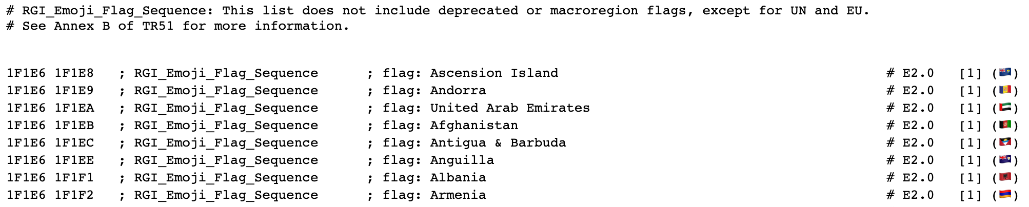 - RGI_EMoji_Tag_sequence : 영국 본토에 있는 영연방 국가들의 국기로 링크따라 확인하면 그룹내 같은 패턴을 보인다.